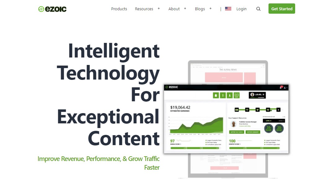 Ezoic stands out for its use of machine learning for website optimization. It takes a multi-dimensional approach to improve content and presentation, providing an enhanced user experience while maximizing revenue. Ezoic analyzes real-time performance metrics, user behavior, and machine learning algorithms to make real-time changes to website layout, including content, assets, and ad placement. The platform also offers manual customization options to website owners.